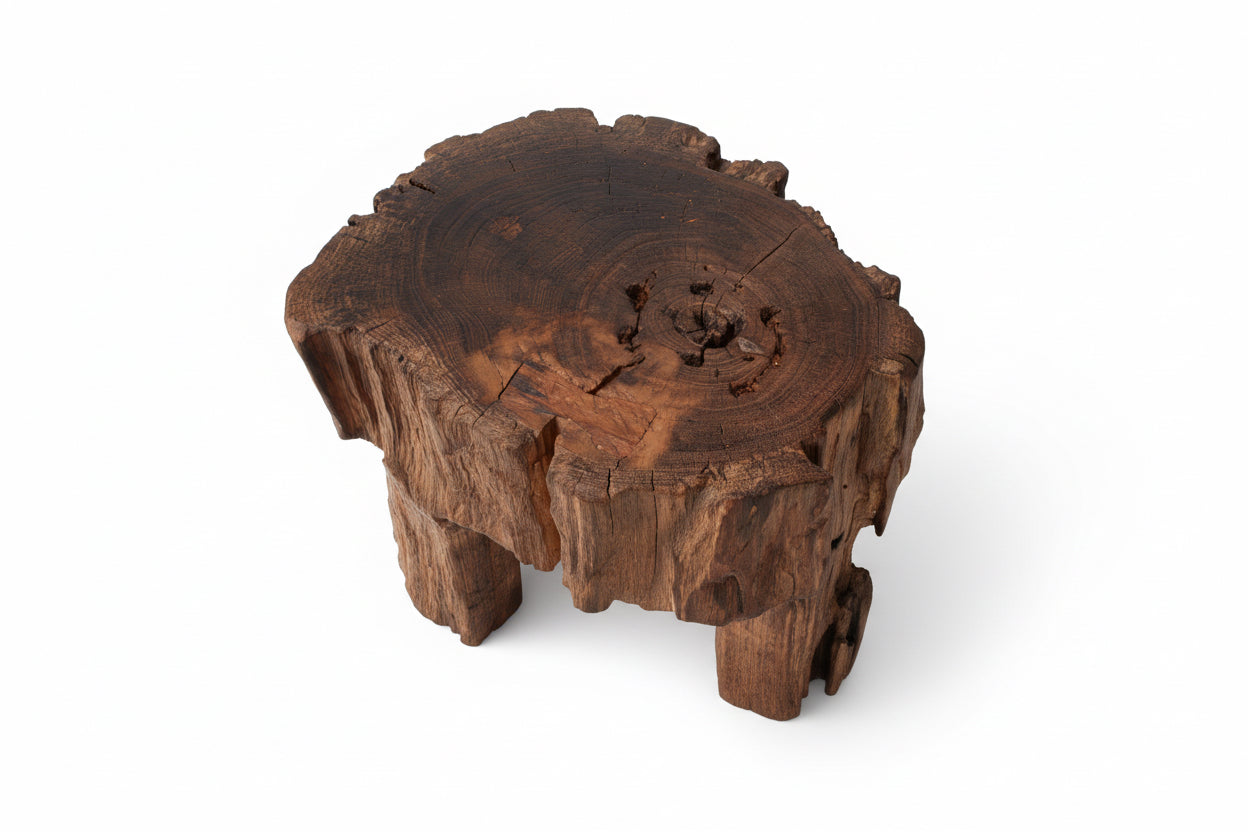 Rooted in the wabi-sabi philosophy, La Buche celebrates age, imperfection, and the raw honesty of natural material. Crafted from solid aged wood, its pronounced growth rings, weathered surface, and subtle irregularities speak directly to time and use rather than refinement.