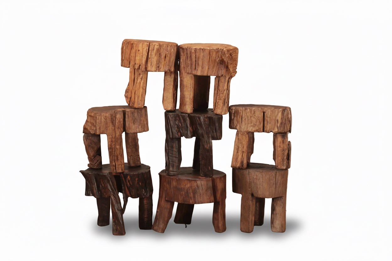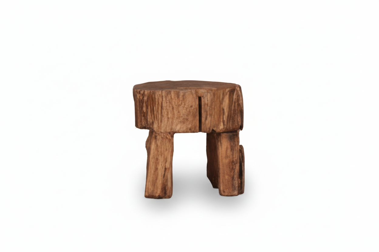 With compact, grounded proportions — approximately 33 × 33 × 50 cm — each stool carries its own character. Variations of a few centimeters in size and form are inherent to the piece, reinforcing its authenticity and one-of-a-kind presence. Functional yet sculptural, it serves equally well as seating, a side surface, or a quiet object within a space.