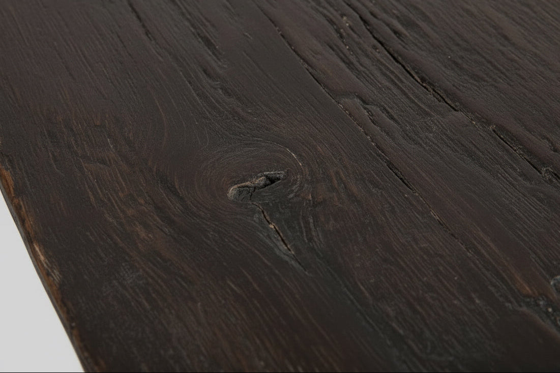 Rooted in the wabi-sabi philosophy, L’Élégant embraces simplicity and the quiet refinement of reused materials. Handcrafted by artisans, each table is made individually from recycled fir, allowing the wood’s softened grain, natural weathering, and subtle irregularities to remain visible — traces of both time and the human hand.