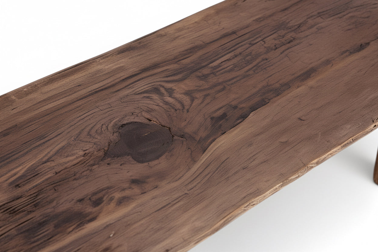 Inspired by the wabi-sabi philosophy, Le Plure honors the quiet beauty of age, imperfection, and the natural poetry found in reclaimed materials. Crafted from old wooden boards sourced from Yunnan, each table carries decades of character and cultural history. Its retro painted finish reveals softened tones shaped by time, creating a balance between rustic warmth and understated elegance.